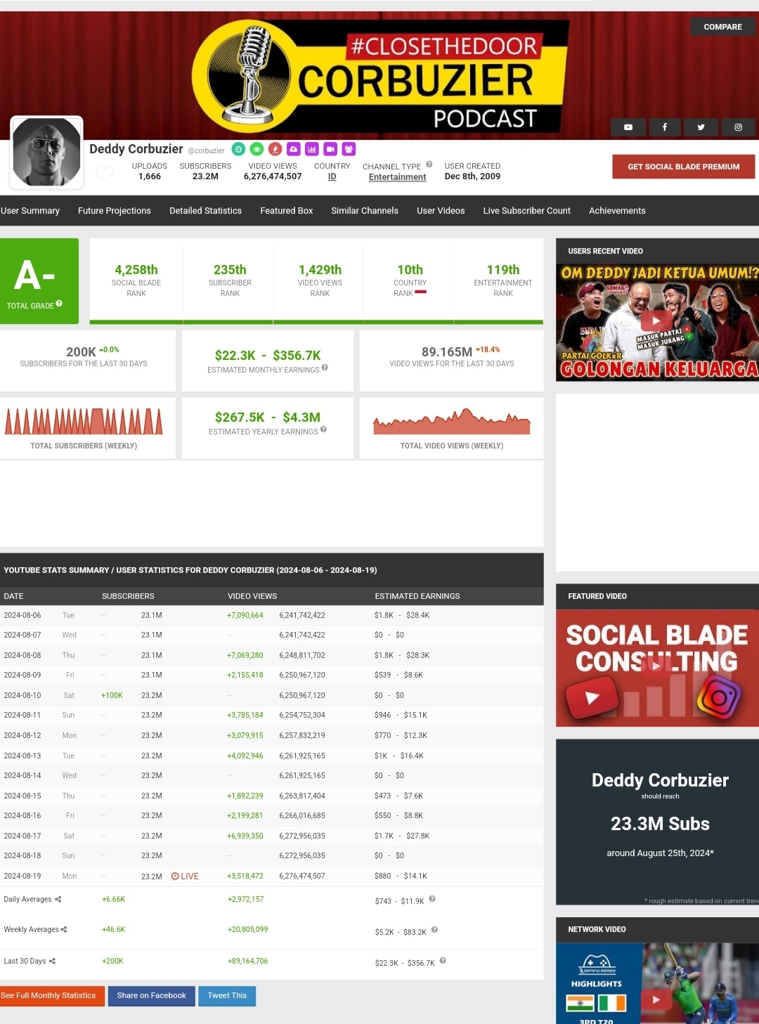 Dari hasil pencarian/pengecekan kita bisa melihat penghasilan yang dihasilkan dari channel nya Om Deddy, subscriber nya dan lain sebagainya. Di situ ditampilkan penghasilan tiap harinya, per bulan dan per tahun dengan mata uang yang digunakan yaitu USD. Tinggal dikalikan saja dengan kurs saat ini.. Hehehe banyak sekali ya penghasilan dari channel nya Om Deddy. Tentu itu semua tidak mudah didapatkan, diperlukan kerja keras ya teman-teman. Semoga bisa termotivasi juga bagi kita semua yang ingin menjadi youtuber/konten kreator.